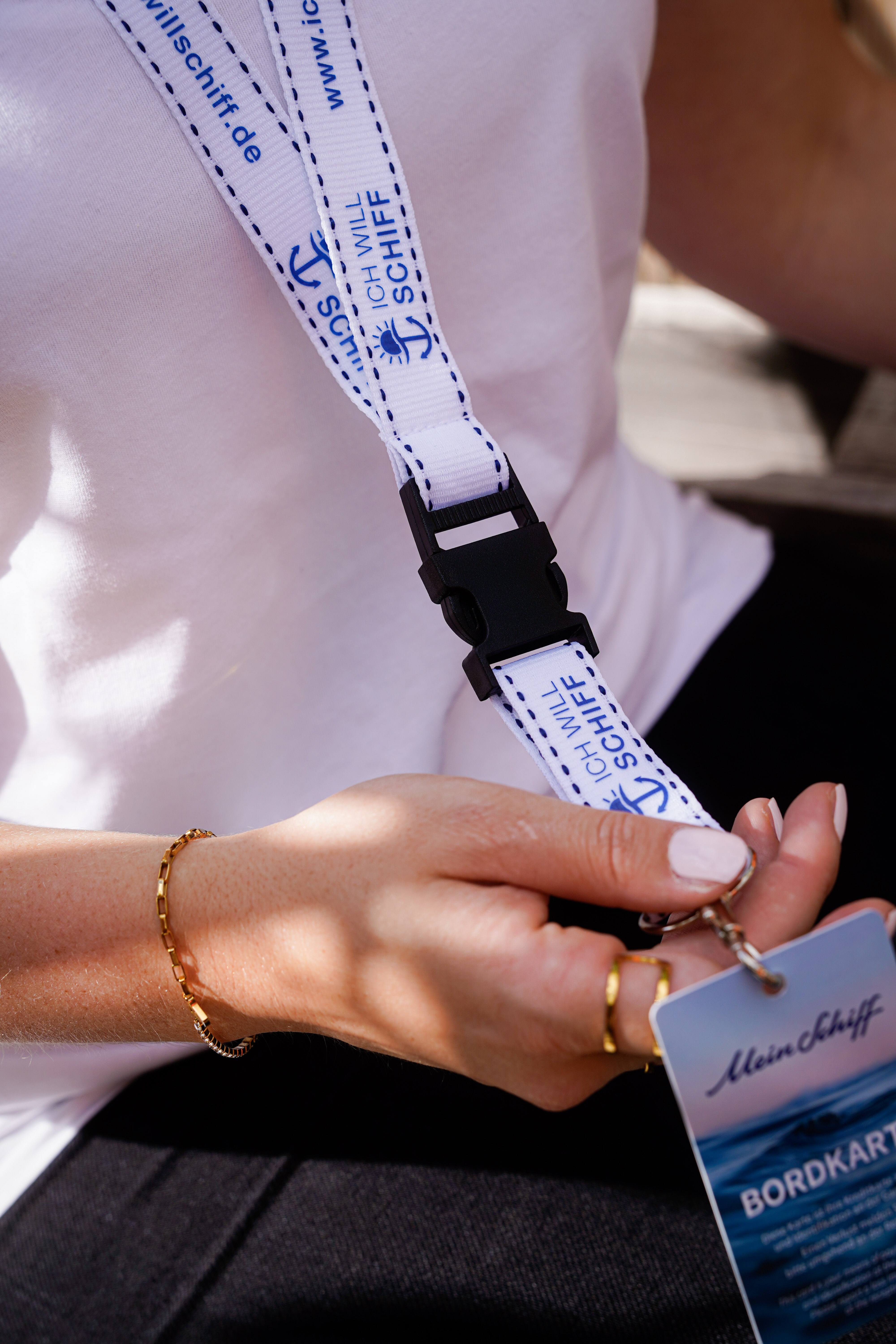 Mit unserem Lanyard hast du deine Bordkarte jederzeit griffbereit – ob für Landgänge, den Zugang zum Schiff oder zur Bezahlung von Extraleistungen an Bord.